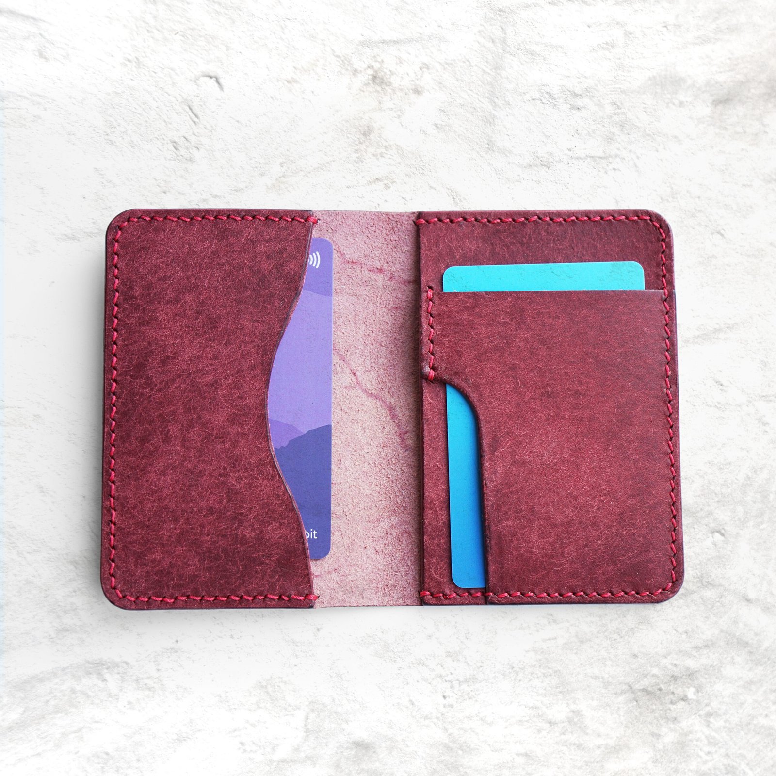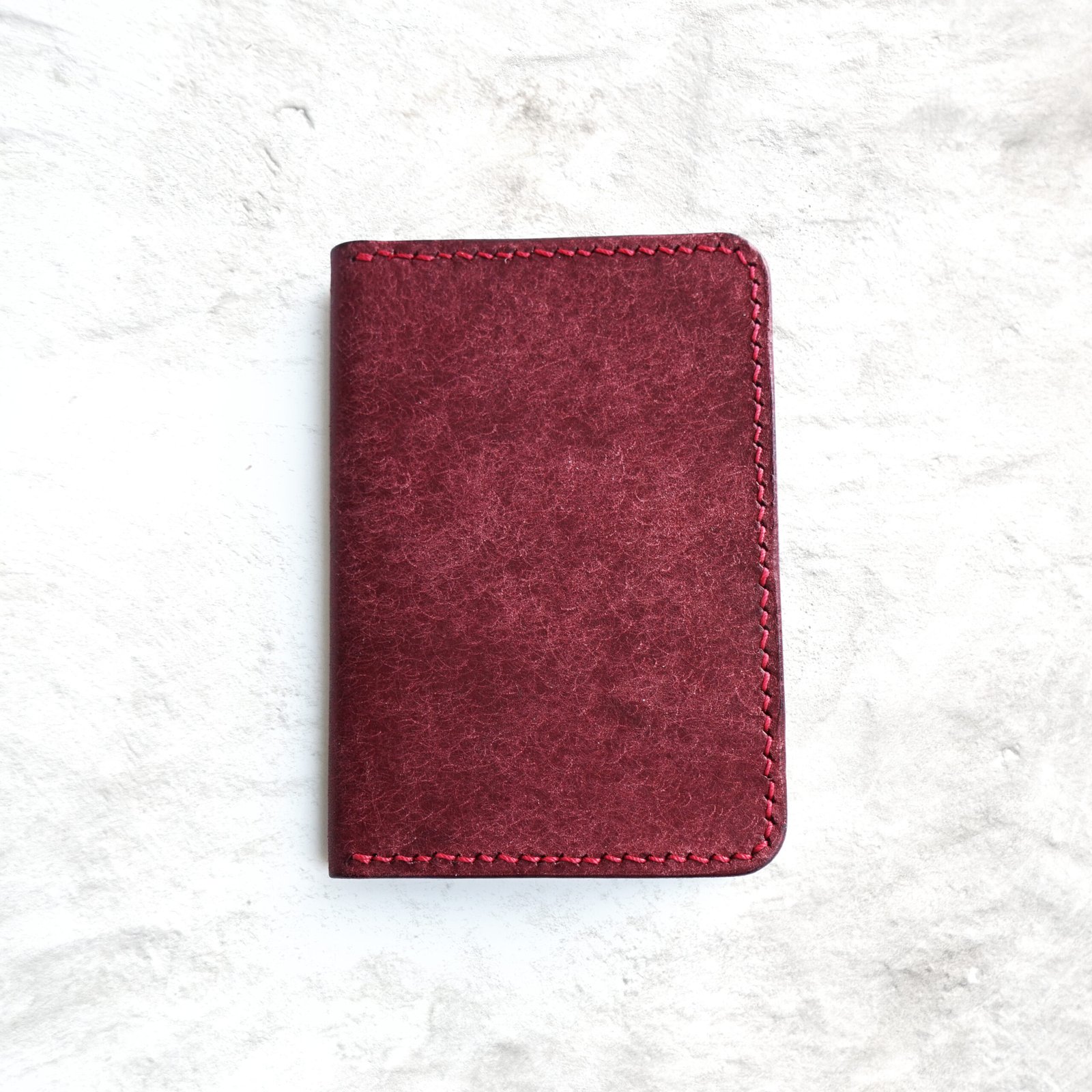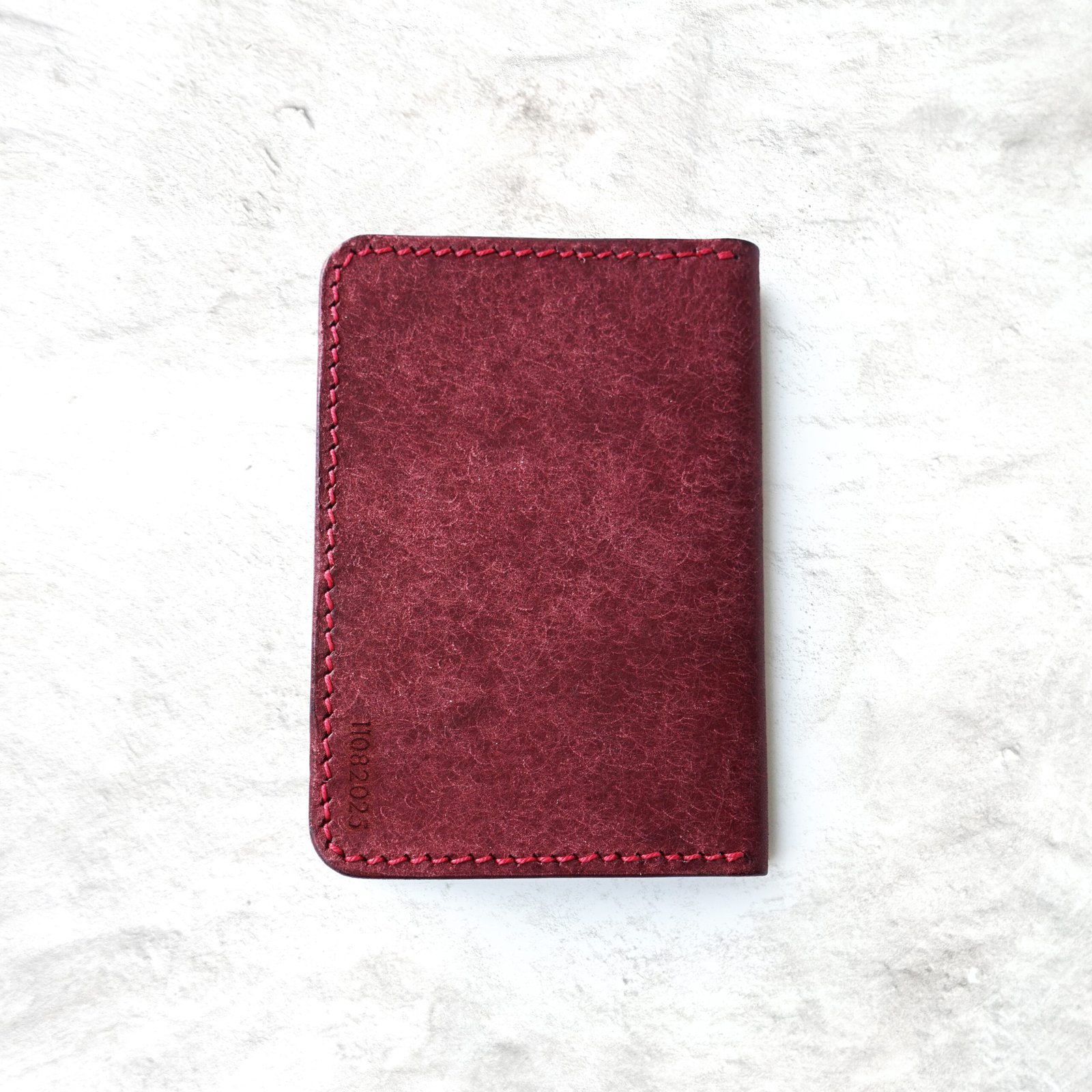 Crafted from luxurious vegetable-tanned leather sourced from a distinguished Italian tannery, this wallet features a deep burgundy tone that strikes a perfect balance between boldness and sophistication. It’s a subtle statement piece that matures beautifully with age and use.