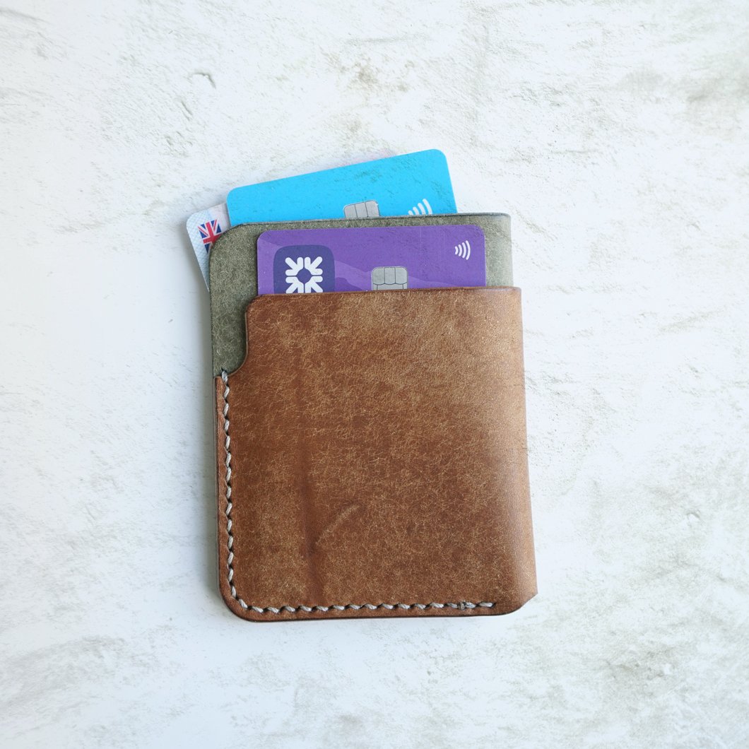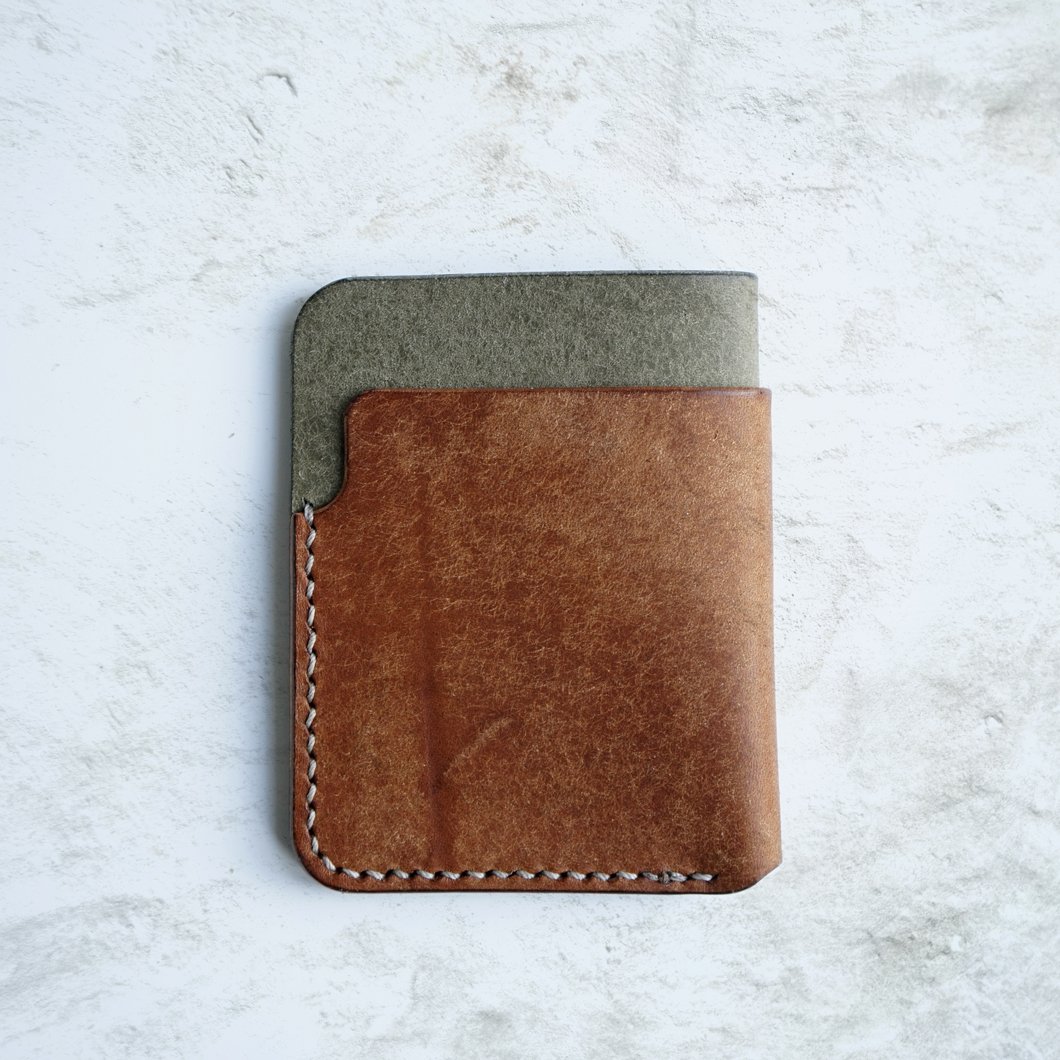 With its rich cognac exterior and dark brown inner layer, this Slim Card Sleeve offers warmth, texture, and a timeless appeal. Built from high-quality vegetable-tanned leather and hand-stitched for durability, it’s a compact piece made to go the distance.